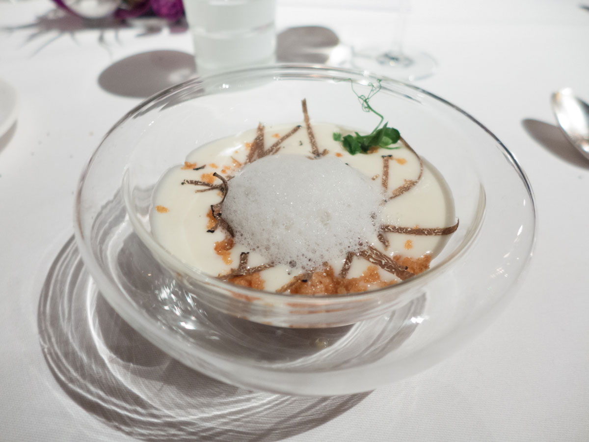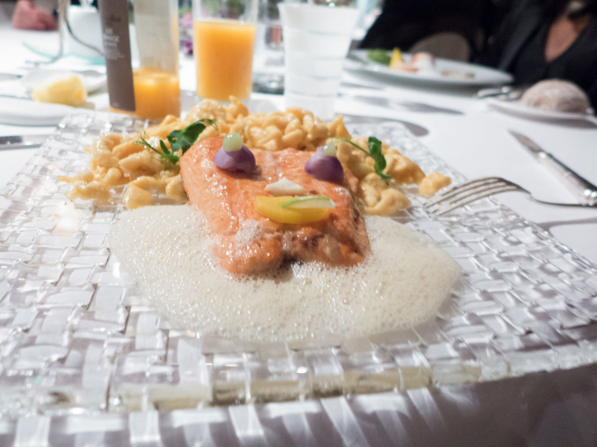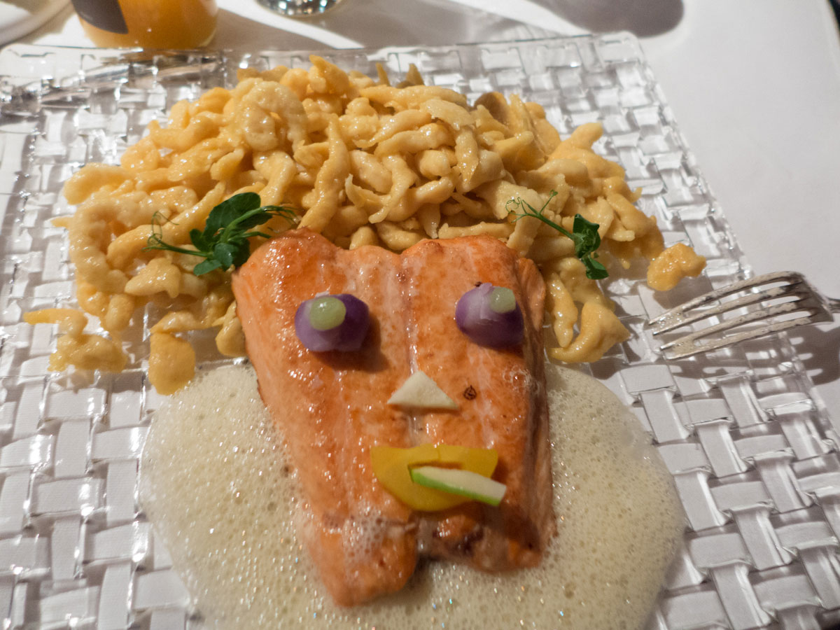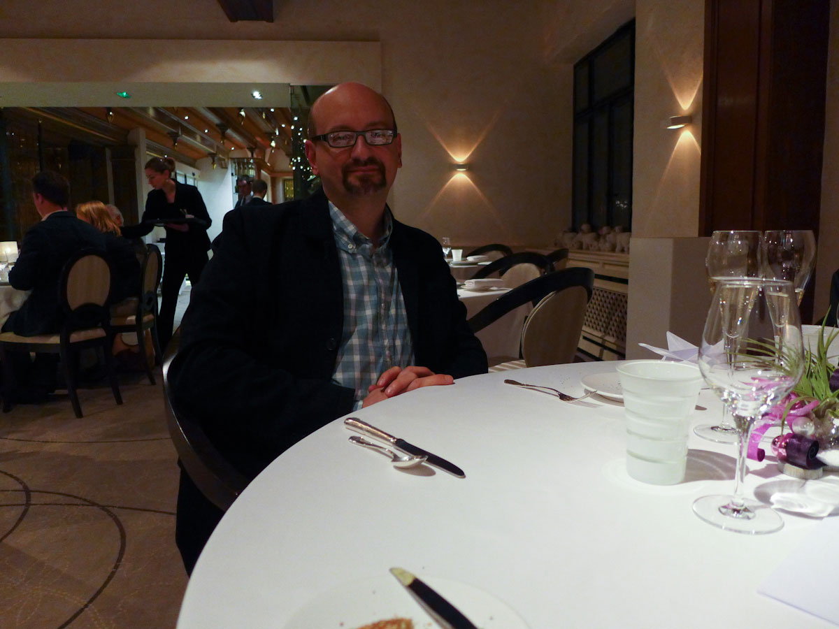 When we told friends we were traveling to Strasbourg for the holidays, at least two of them mentioned Au Cheval Blanc (“White Horse”). Just an hour North of Strasbourg, this was an easy trip on a brisk Christmas Eve. I don’t think it has any Michelin stars, but it deserves three, in our opinion. And to cap off a stunning meal, as we were walking out to the parking lot, we befriended a German couple that had been going here for 30 years – for their anniversary. Hmmm – maybe we’ll make it a tradition too. Here’s the Christmas Eve Menu: